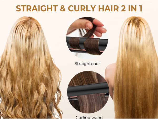 - 2 EN 1 et BRILLANCE : Lisseur de cheveux 2 en 1 permettant de lisser et boucler vos cheveux avec un seul appareil. le revètement des plaques assure un effet brillance à vos cheveux.